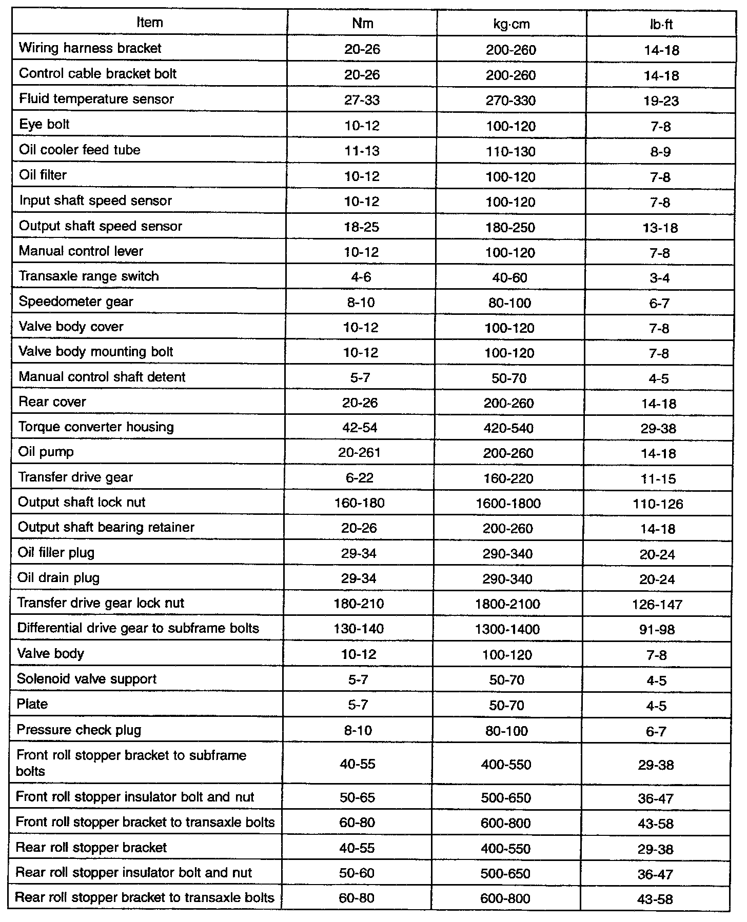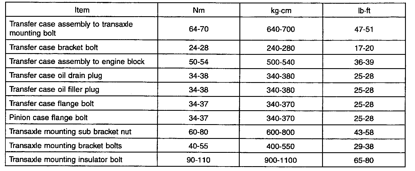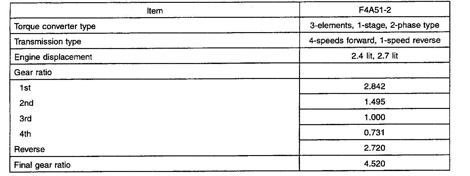 SPECIFICATIONS (A/T)