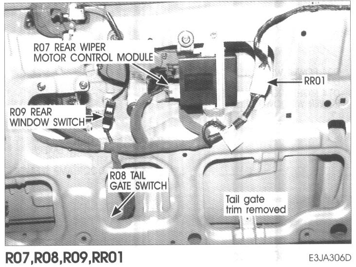 R07 Rear Wiper Motor Control Module, R08 Tail Gate Switch, R09 Rear Window Switch, RR01: