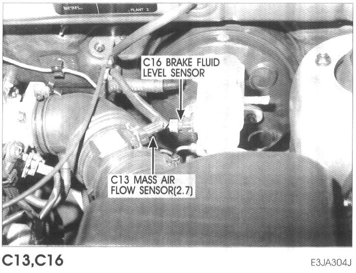 C13 Mass Air Flow Sensor, C16 Brake Fluid Level Sensor: