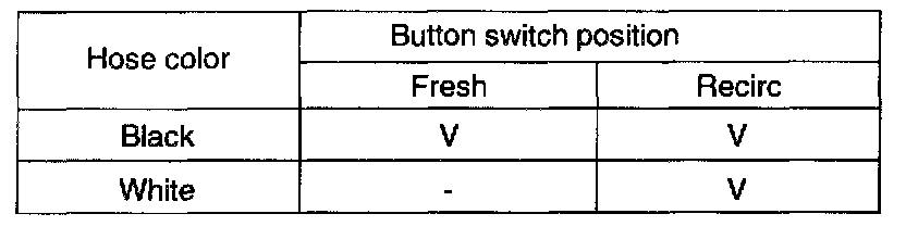 1. Connect the vacuum tester to black color hose for the fresh/recircle control switch.