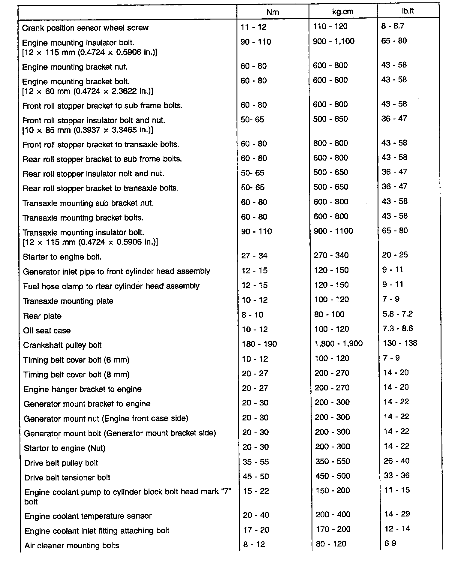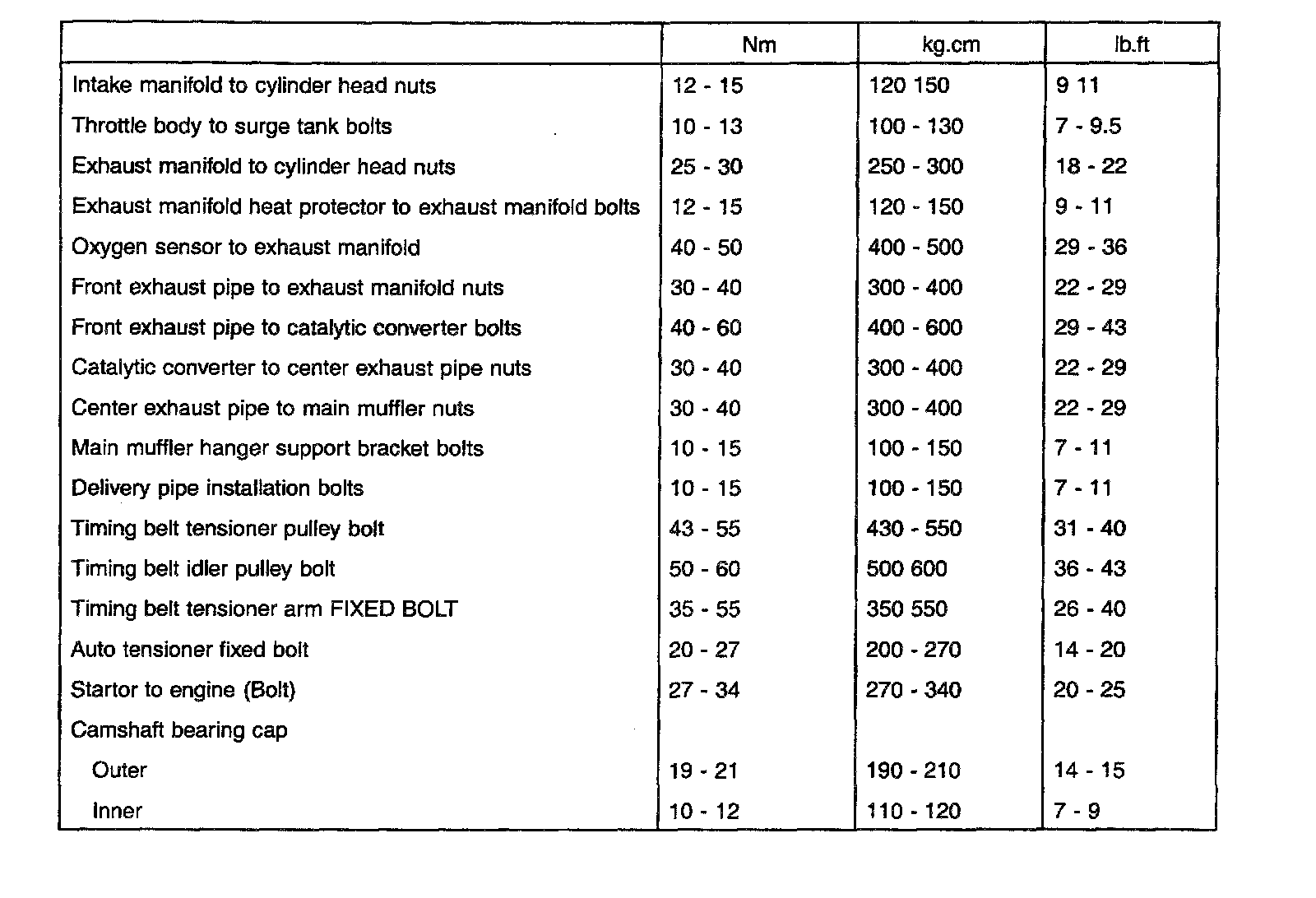 General Torque Specifications