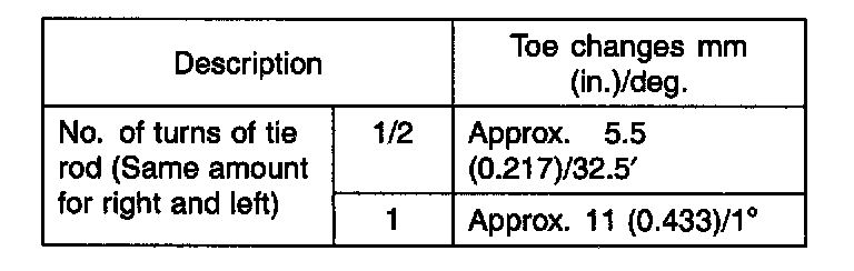 ^ Toe-in adjustment should be made by turning the right and left tie rods by the same amount.