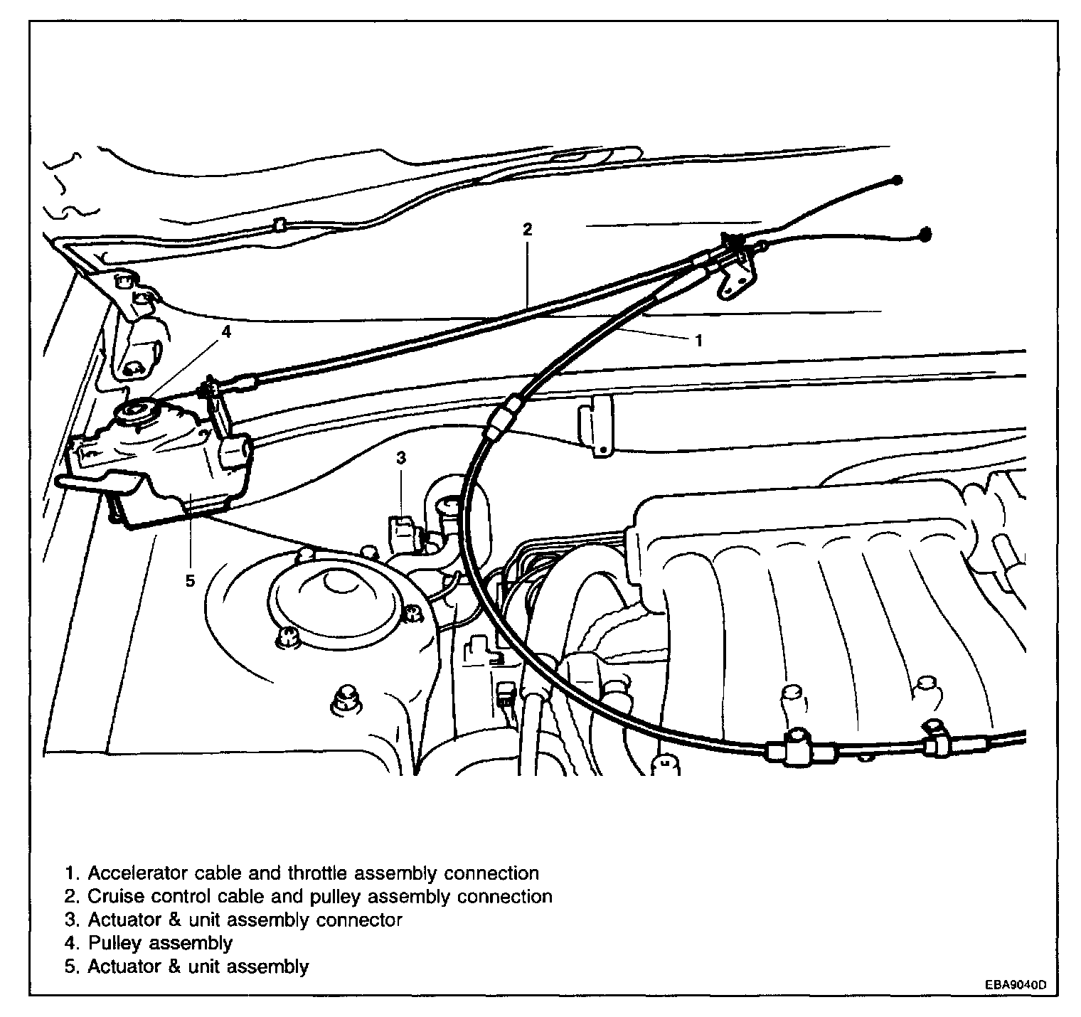 2. Disconnect the accelerator cable and cruise control cable from throttle assembly by turning the throttle bellcrank to full open position.