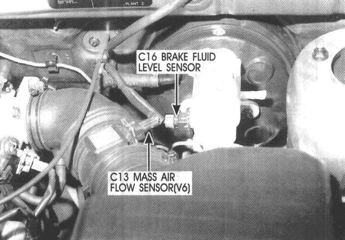 C13 Mass Air Flow Sensor, C16 Brake Fluid Level Sensor: