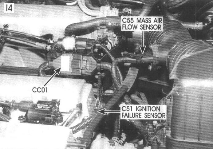 C51 Ignition Failure Sensor, C55 Mass Air Flow Sensor, CC01: