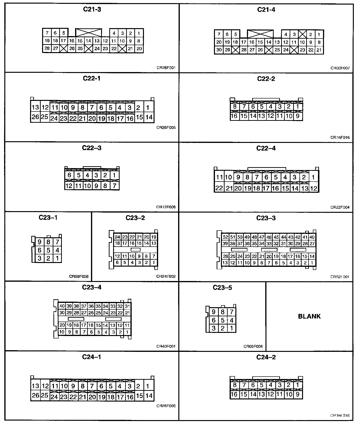 PCM Connector Views C22-1 through C22-4