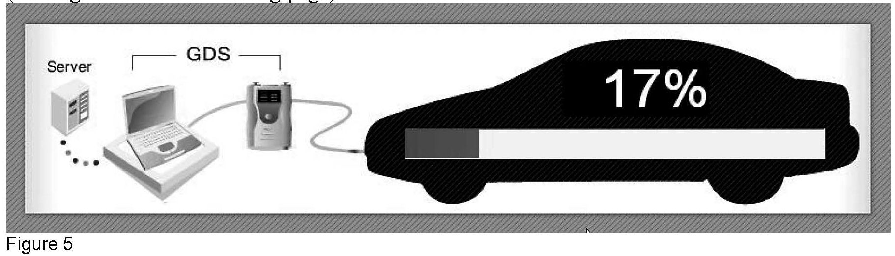 A window will appear to alert you that the GDS is "ROM ID Reading." During this time, the GDS will check for available reprograms for the vehicle's FCU. If any reprograms are found, the ROM ID will be listed in the "Current ROM ID" window. The "Current ROM ID" window shows the existing status of programming in the FCU. Note: If the ROM IDs match, the ECU already has the latest reprogramming or your GDS unit needs to have the latest updates installed. Refer to the chart on page 5. The TCM ID column lists the latest ID for each condition. Go to the right edge of the "Upgrade Event" window and click on the down arrow. Available upgrade events will be displayed in a drop down box. When you select one, the "Upgrade" button will appear in the center of your screen. (See Figure 4.)