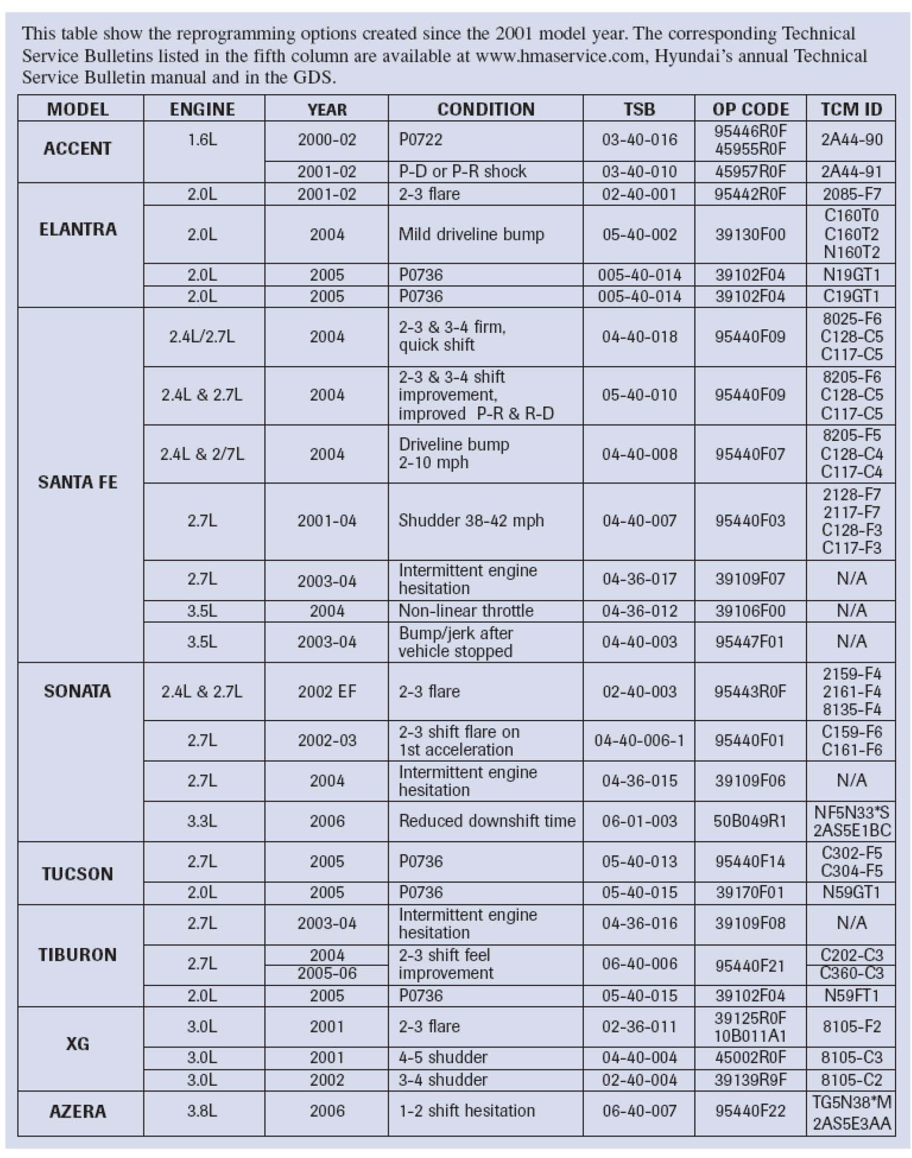 Home >> Hyundai >> 2002 >> Santa Fe L4-2.4L >> Repair and Diagnosis >> Powertrain Management >> Computers and Control Systems >> Engine Control Module >> Technical Service Bulletins >> All Technical Service Bulletins >> Engine Controls - ECU Reprogramming Procedure
