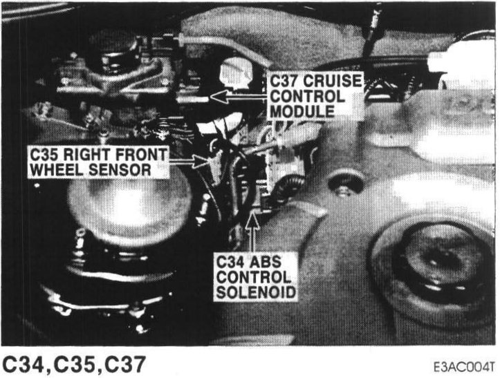 C34 ABS Control Module, C35 Right Front Wheel Sensor, C37 Cruise Control Module:
