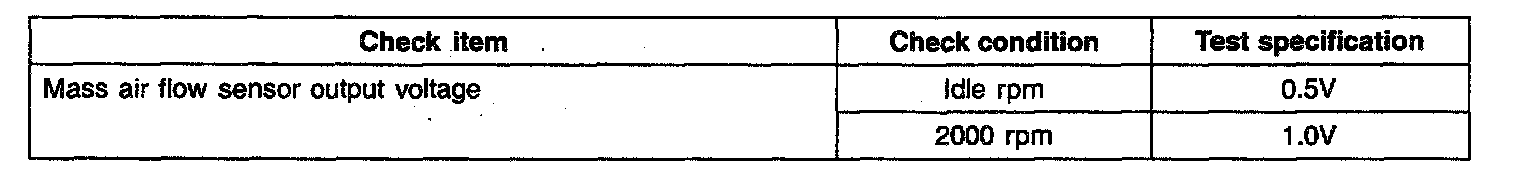 2. If the MAF sensor output voltage is other than 0 when the ignition switch is turned on (do not start the engine). Check for a faulty MAF sensor or ECM.