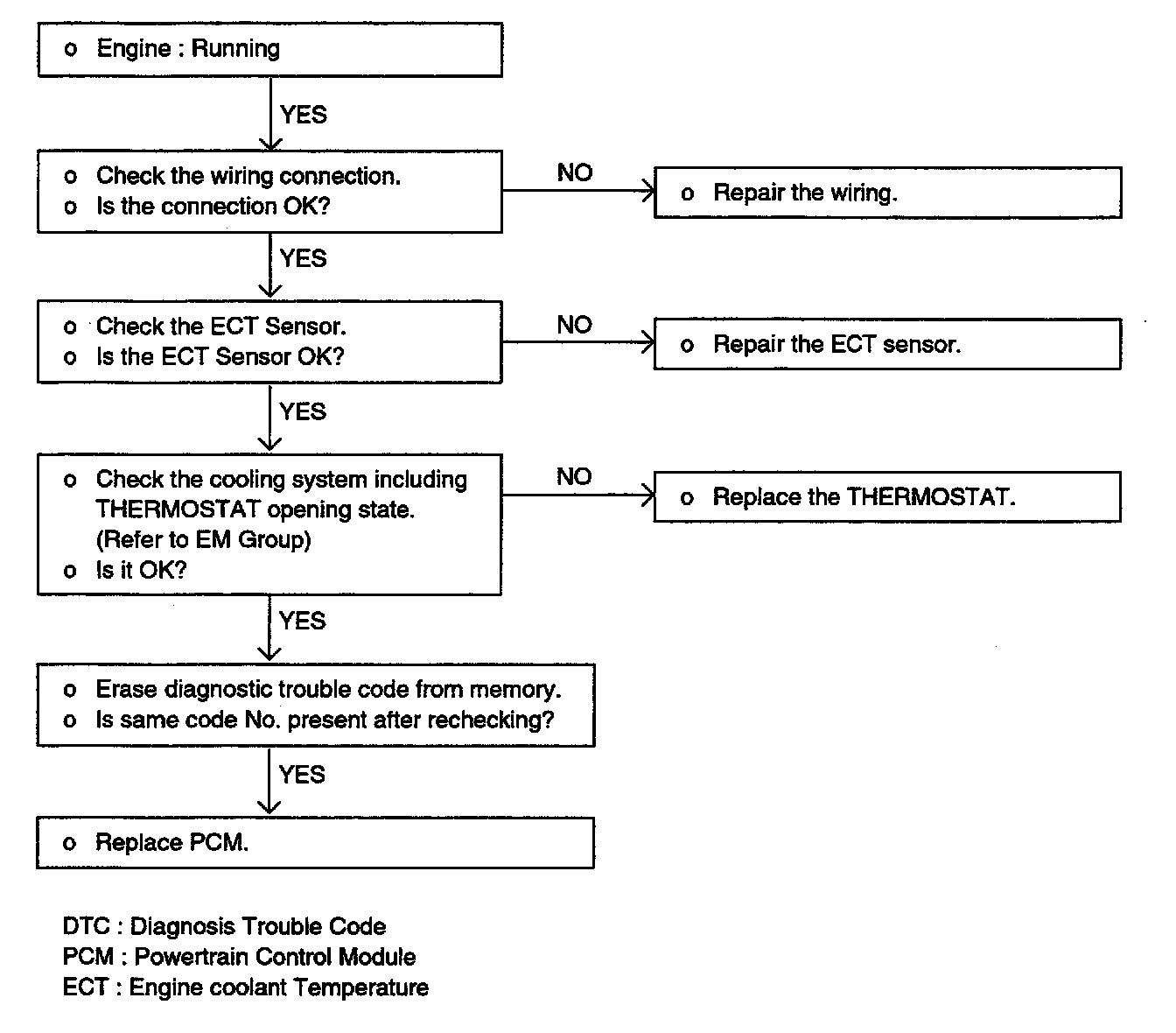 If the last idle speed is not enough or the engine gives off dark smoke during the engine warm-up operation, the engine coolant temperature sensor might be the cause.