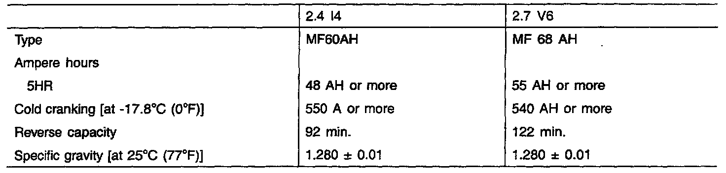 NOTE: COLD CRANKING AMPERAGE is the amperage a battery can deliver for 30 seconds and maintain a terminal voltage of 7.2 or greater at a specified temperature. REVERSE CAPACITY RATING is the amount of time a battery can deliver 25 A and maintain a minimum terminal voltage of 10.5 at 26.7 °C (80 °F).