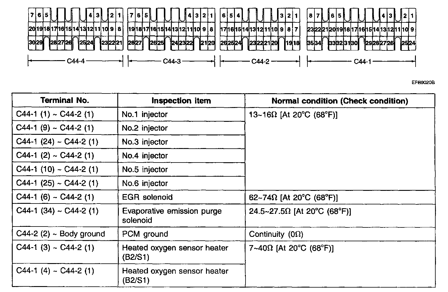 Power-Train Control Module(PCM) Connector Terminal Arrangement Part 2: