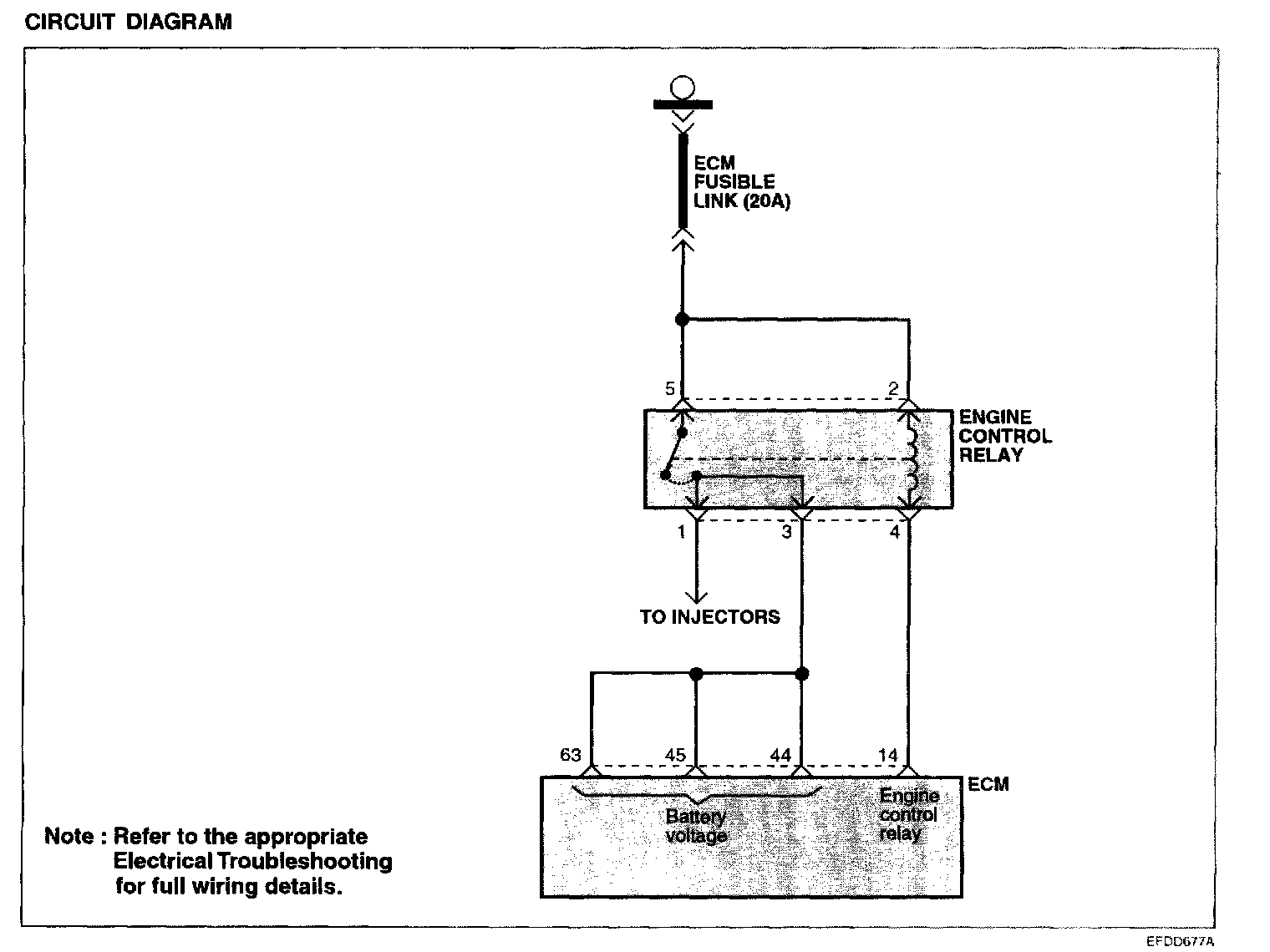 Home >> Hyundai >> 2003 >> Accent L4-1.5L >> Repair and Diagnosis >> Powertrain Management >> Computers and Control Systems >> Main Relay (Computer/Fuel System) >> Testing and Inspection