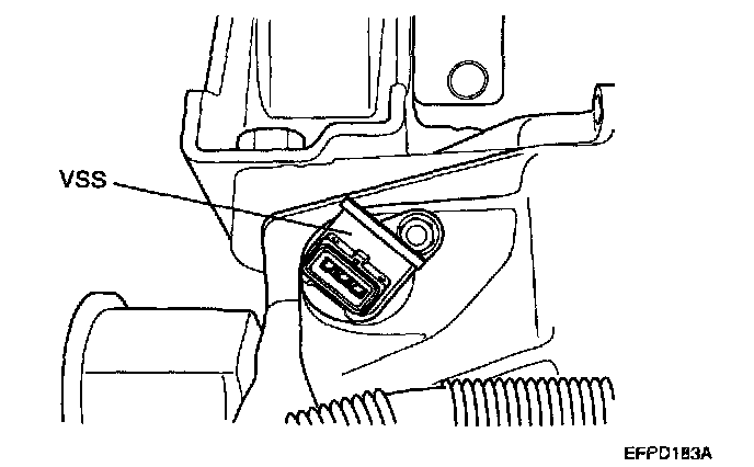 The vehicle speed sensor is a hall effect sensor that is attached on the output shaft of transaxle. The sensor converts the transaxle gear revolutions into a pulse signal which is sent to the ECM.