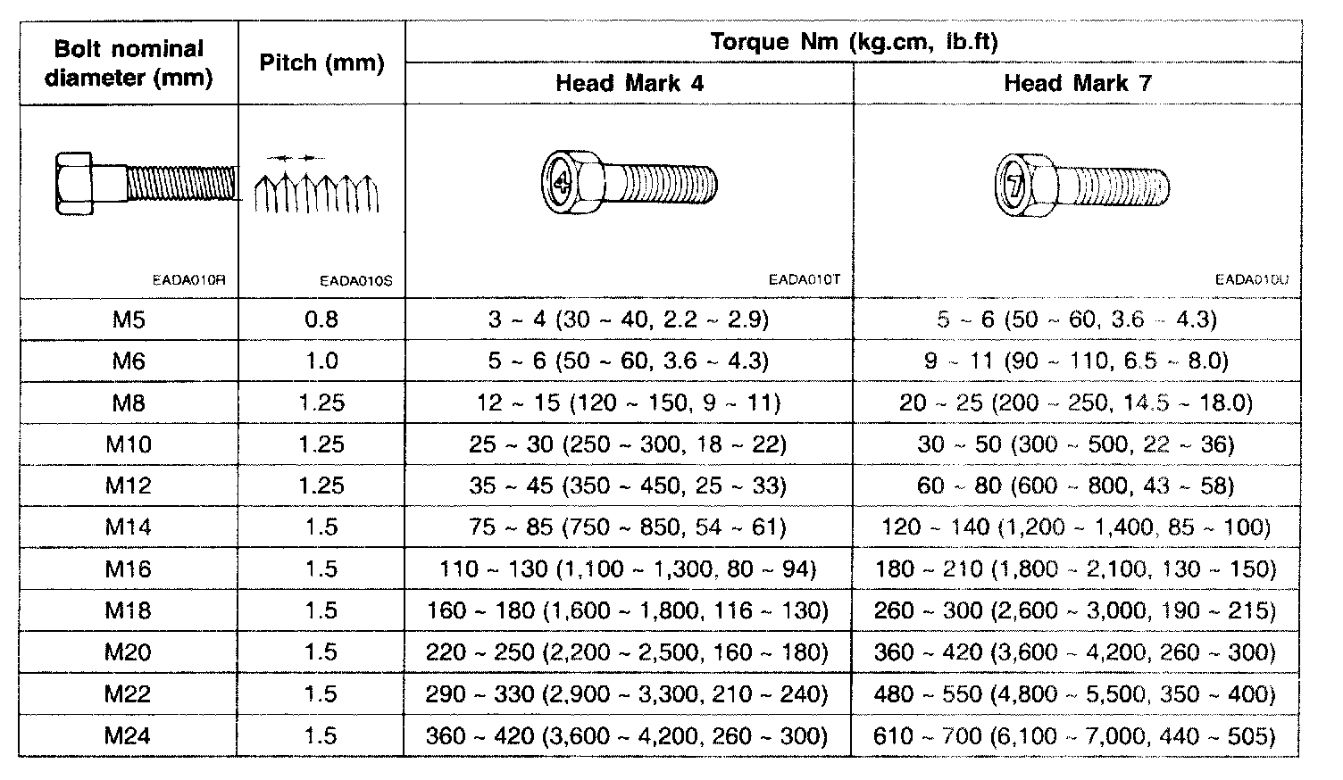 TIGHTENING TORQUE TABLE OF STANDARD PARTS