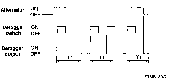 1. After ALT "L" ON, if the defogger is switched ON, the defogger output is ON for 20 minutes duration.
