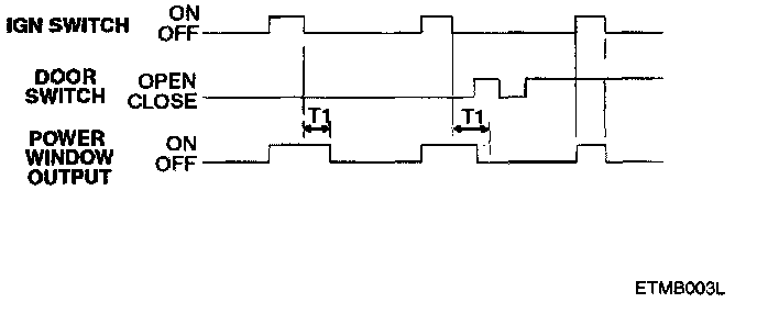 1. When the ignition is switched ON, the power window relay output is turned ON.