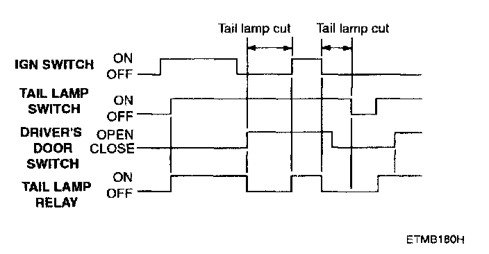 1. When the tail lamp is switched ON, if the ignition is switched OFF and the driver's door is opened, the tail lamp should be automatically OFF.