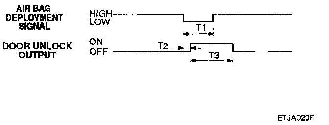 1. With the ignition turned ON, if the air bag is deployed, a crash signal is received and send an UNLOCK output to all doors UNLOCK.