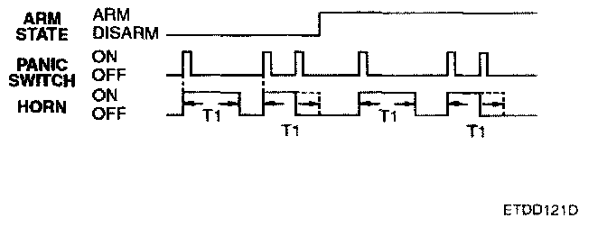 With transmitter(TX) lock(arm) state, if TX lock signal is received again within 4 sec. since final TX lock signal, horn alarms once for 0.05 sec
