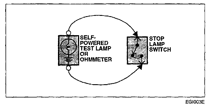 An ohmmeter can be used in place of a self-powered test lamp. The ohmmeter shows how much resistance there is between two points along a circuit. Low resistance means good continuity.