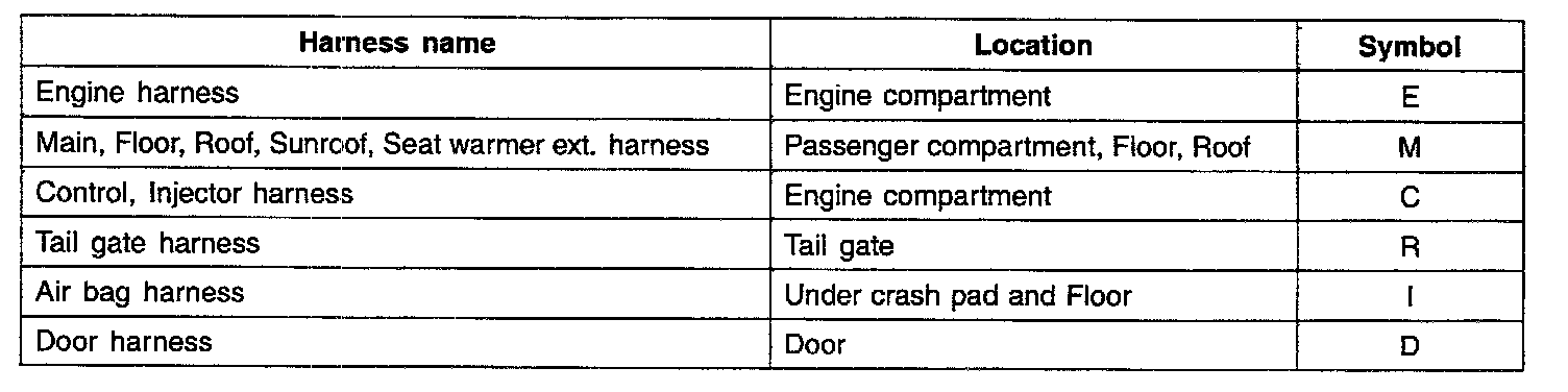 Electrical wiring connectors are classified according to the wiring parts in the Harness Layouts.