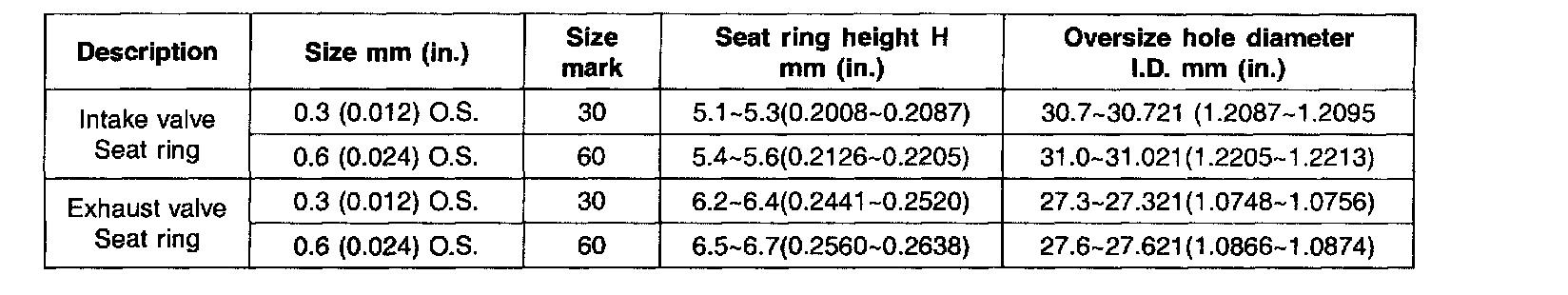 0.6 mm (0.024 inch) O.S. 31.0 - 31.021 mm (1.2205 - 1.2213 inch)