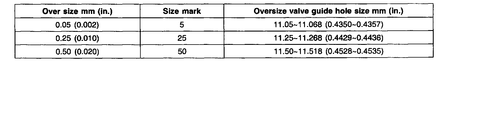 0.05 mm (0.002 inch) O.S. 11.05 - 11.068 mm (0.435 - 0.4357 inch)
