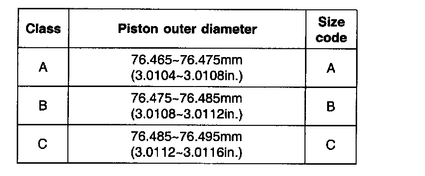 Oil ring side rail: ...........0.2 - 0.7 mm (0.0079 - 0.0276)