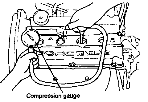CHECKING COMPRESSION PRESSURE1. Before checking engine compression, check the engine oil level. Also check that the starter motor and battery are all in normal operating condition.