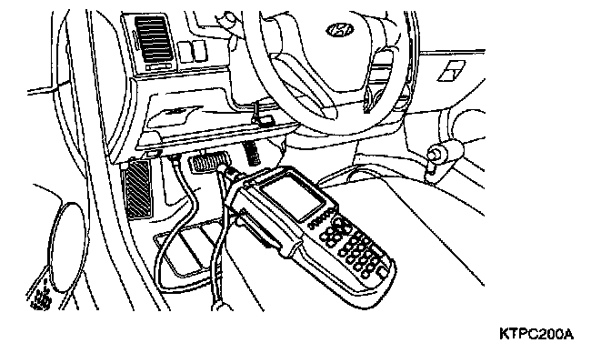 2. After connecting keyless adapter to the multi purpose check connector (1 Opins) beside data link connector in driver side crash pad lower panel, turn the power on hi-scan.