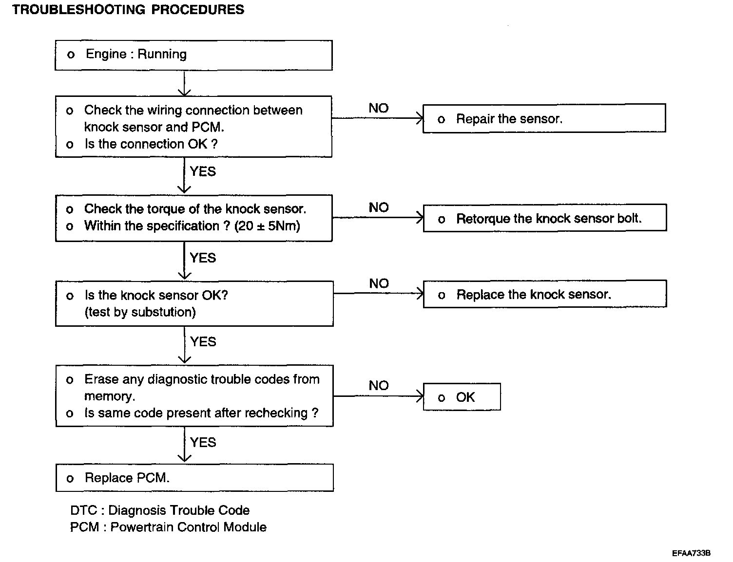 Knock sensor: 16 - 28 Nm (160 - 250 kg.cm, 11.8 - 18.4 lb.ft)