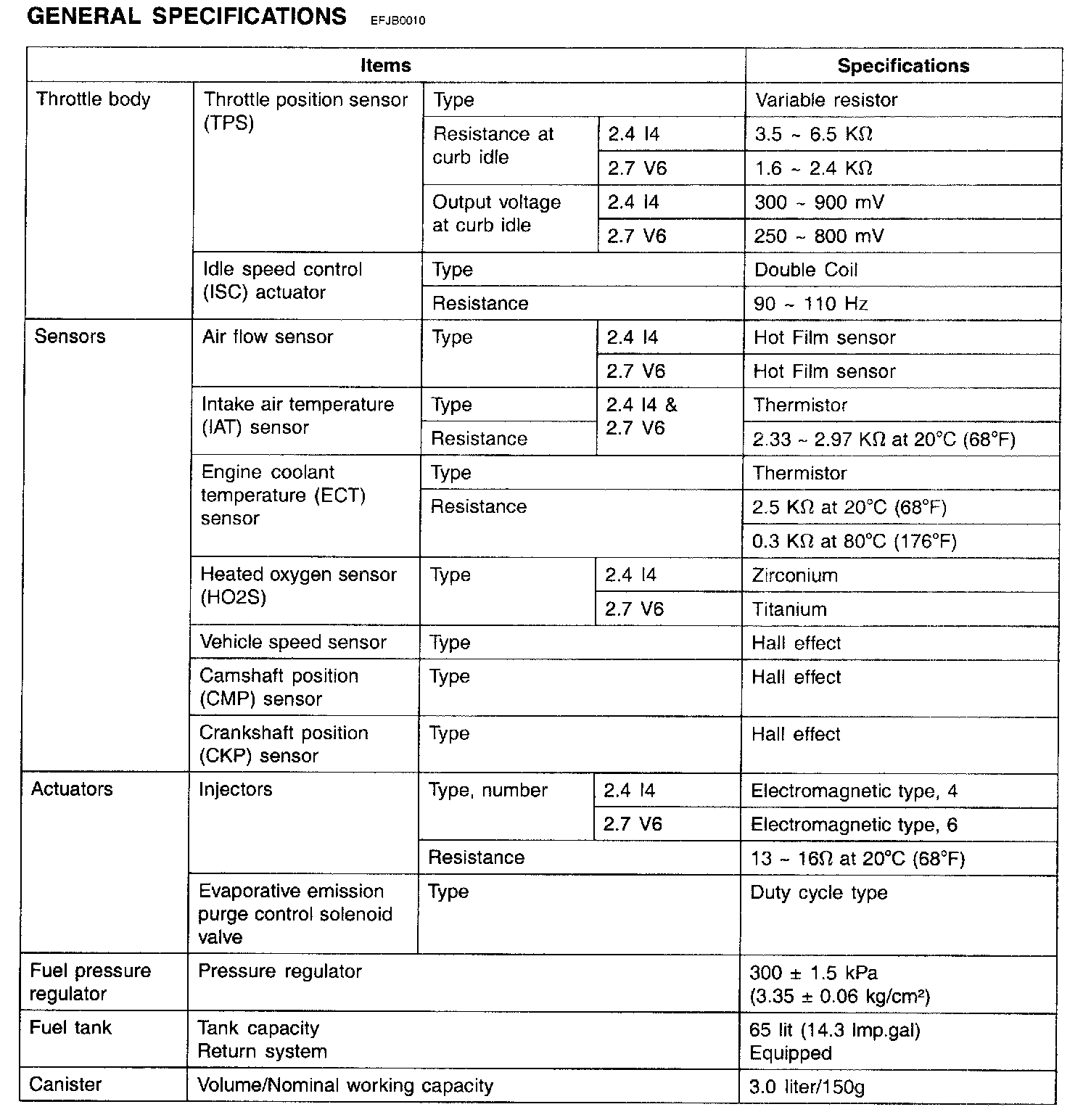 General Specifications: