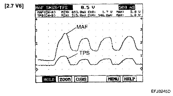 Home >> Hyundai >> 2003 >> Sonata V6-2.7L >> Repair and Diagnosis >> Powertrain Management >> Computers and Control Systems >> Throttle Position Sensor >> Testing and Inspection >> Oscilloscope Patterns and Waveforms