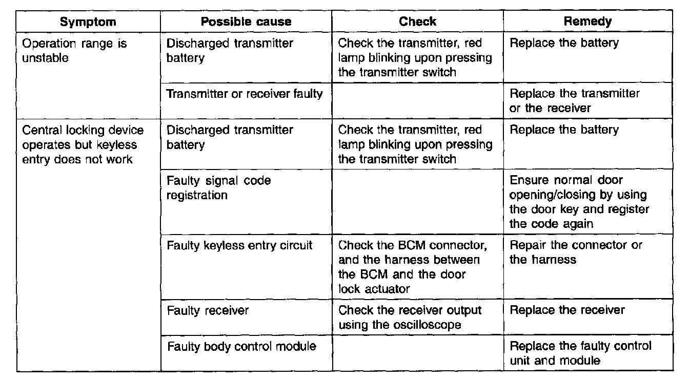 do not operate simultaneously Systems other than the keyless entry may be considered faulty Then check related Systems.