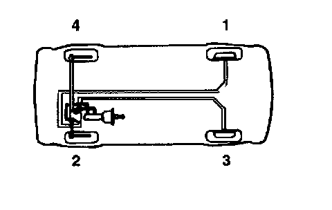 BLEEDING OF BRAKE SYSTEMThis procedure should be followed to ensure adequate bleeding of air and filling of the ABS unit, brake lines and master cylinder with brake fluid.