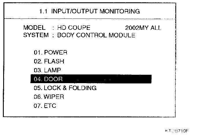 Select "04 DOOR" and press [ENTER] Then the following screen will be displayed.