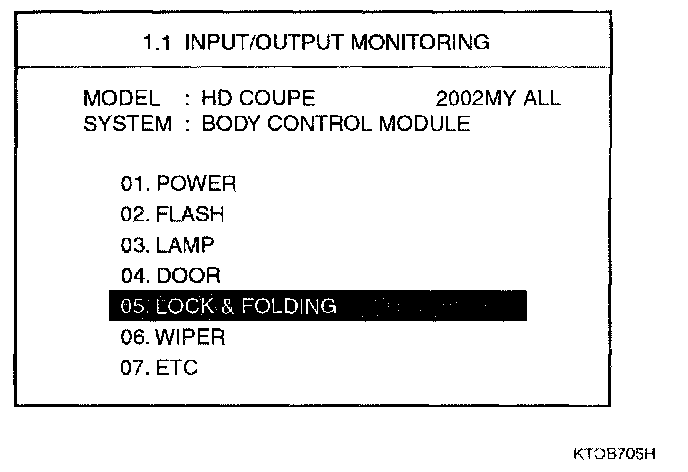 1. Select "05.LOCK & FOLDING" and press [ENTER]. Then, the following screen will be displayed.