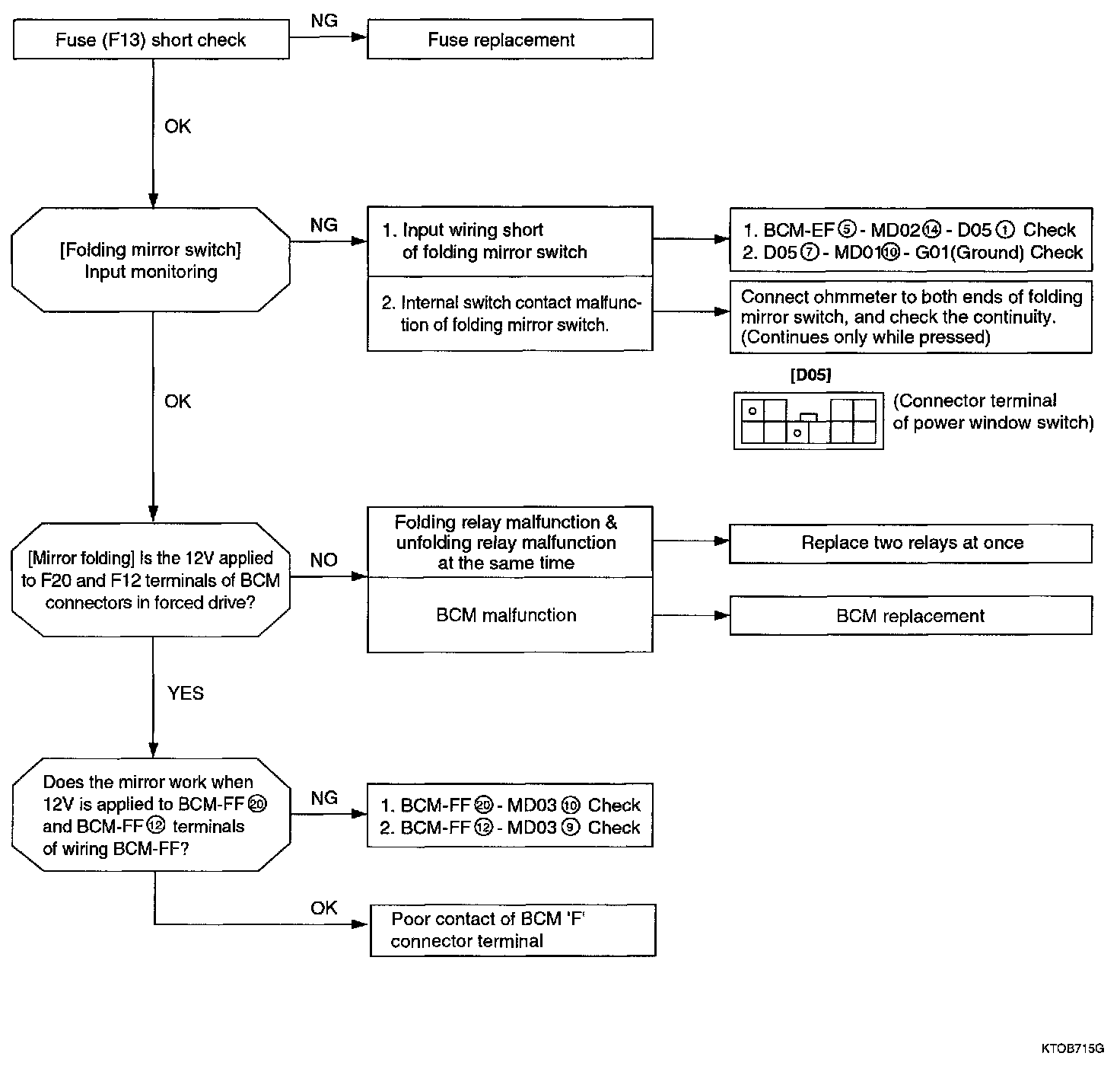 - Output: Mirror folding (F20), Door unlock (F12)