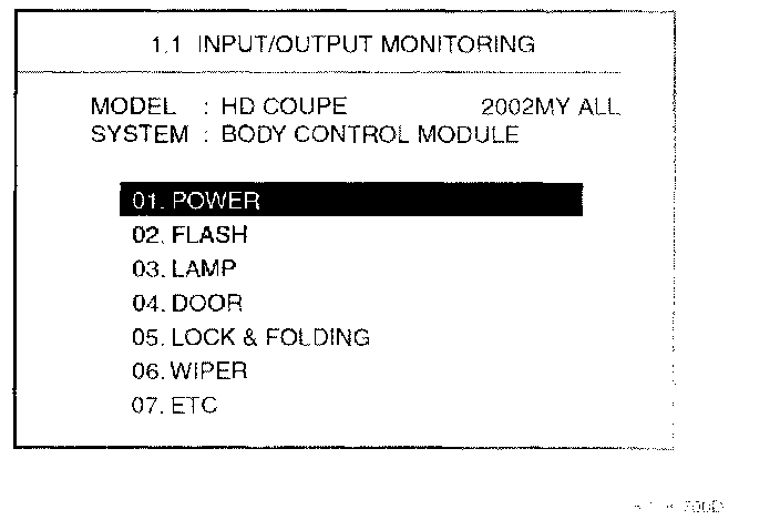 1. Select "01.INPUT ACTUATION" and press [ENTER].
