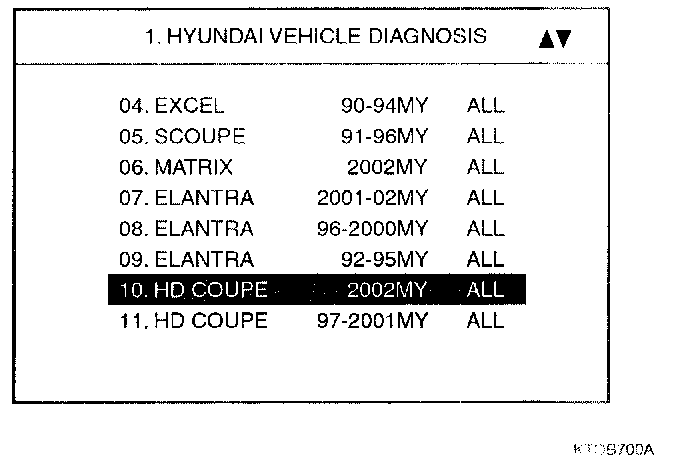 3. Firstly, to diagnose BCM functions, select the menu of "10 HD COUPE" mode and "07 BODY CONTROL MODULE" [ENTER].