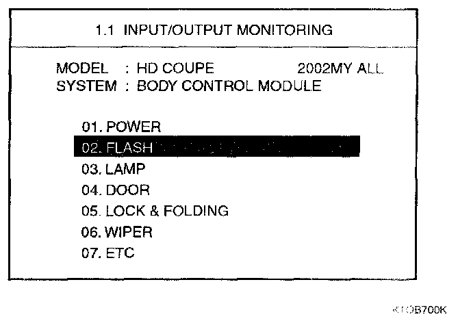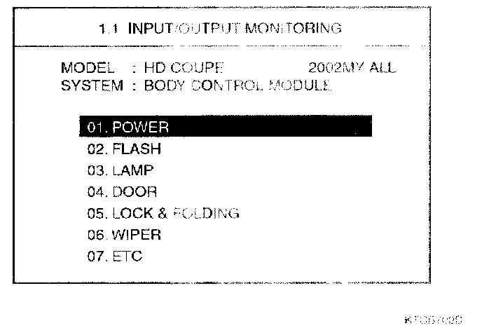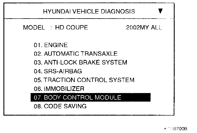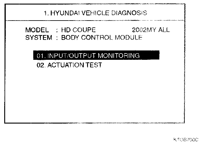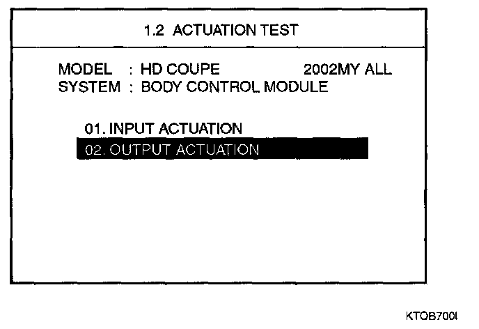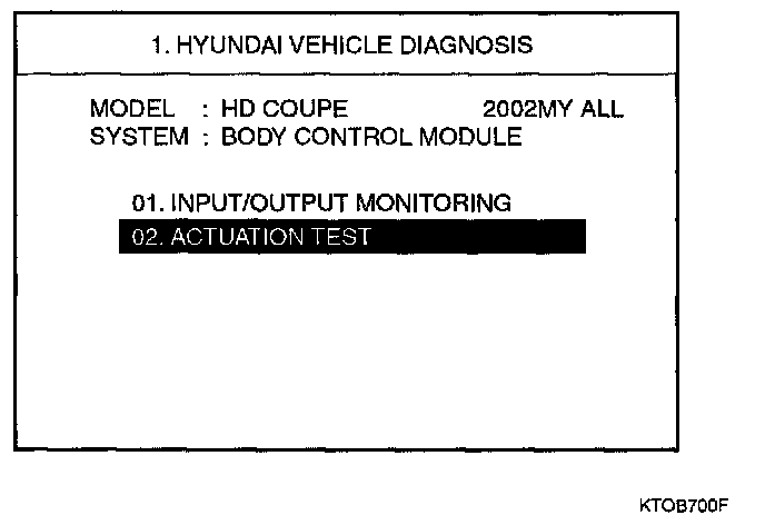 Home >> Hyundai >> 2003 >> Tiburon L4-2.0L >> Repair and Diagnosis >> Powertrain Management >> Computers and Control Systems >> Body Control Module >> Testing and Inspection >> Scan Tool Testing and Procedures