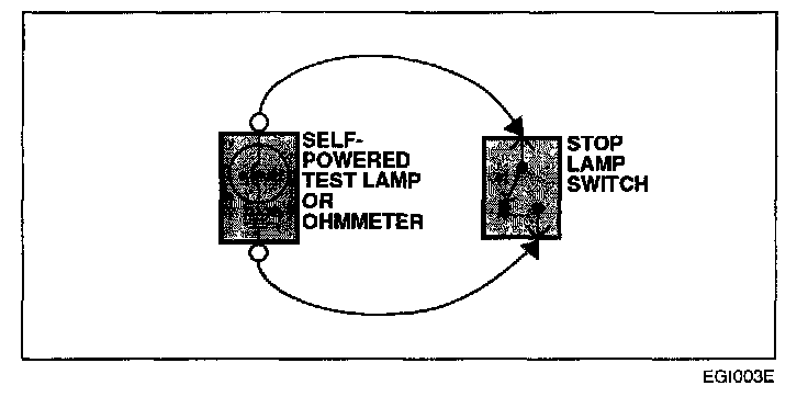 An ohmmeter can be used in place of a self-powered test lamp. The ohmmeter shows how much resistance there is between two points along a circuit. Low resistance means good continuity.