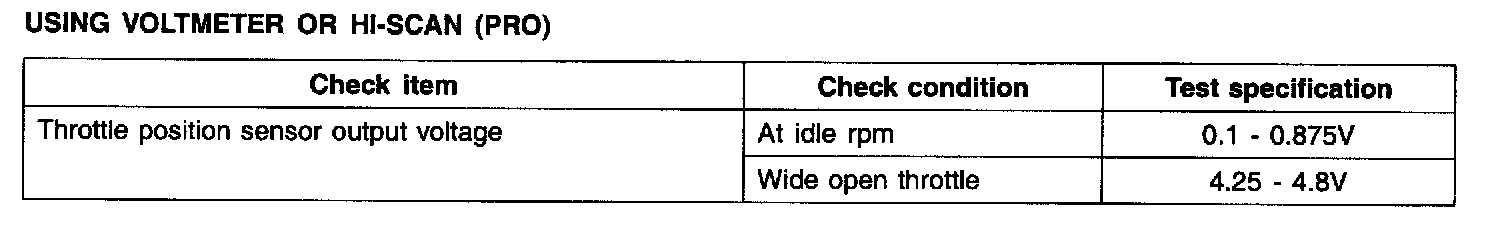 4. Operate the throttle valve slowly from the idle position to the full open position, and check that the resistance changes smoothly in proportion with the throttle valve opening angle.