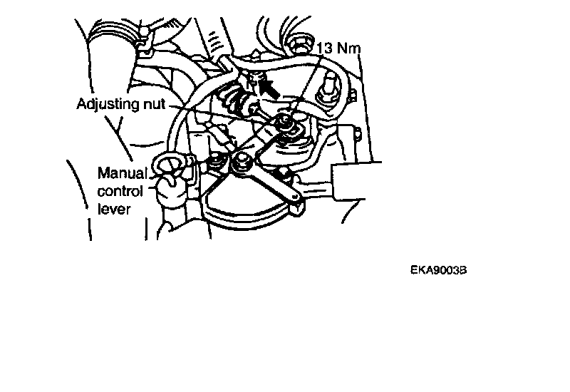 2. Loosen the control cable to the manual control lever coupling nut to free the cable and lever.