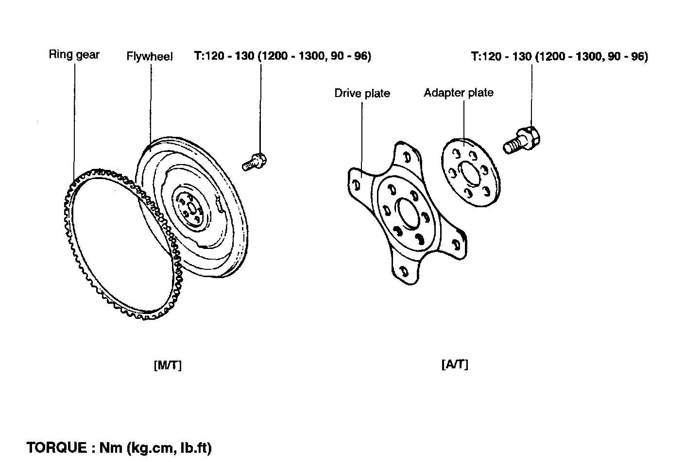 .............120 -130 Nm (1200 -1300 kg.cm, 90 - 96 ft. lbs.)