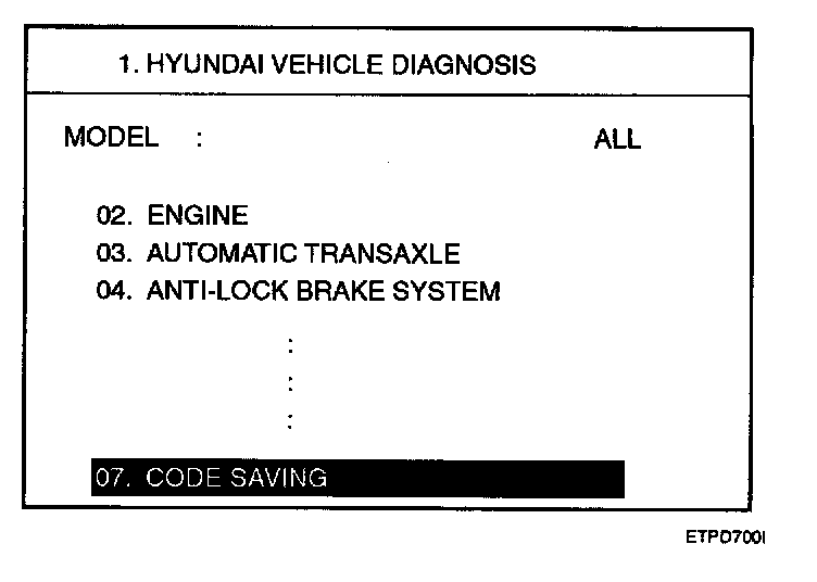 4. After selecting "CODE SAVING" menu, button 'ENTER" key, then the screen will be shown.