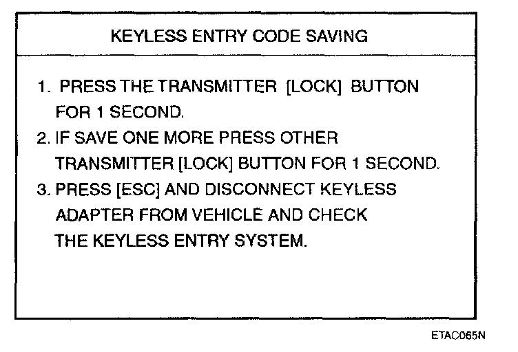 5. After removing the ignition key from key cylinder, push "ENTER" key to proceed to the next mode for code saving.