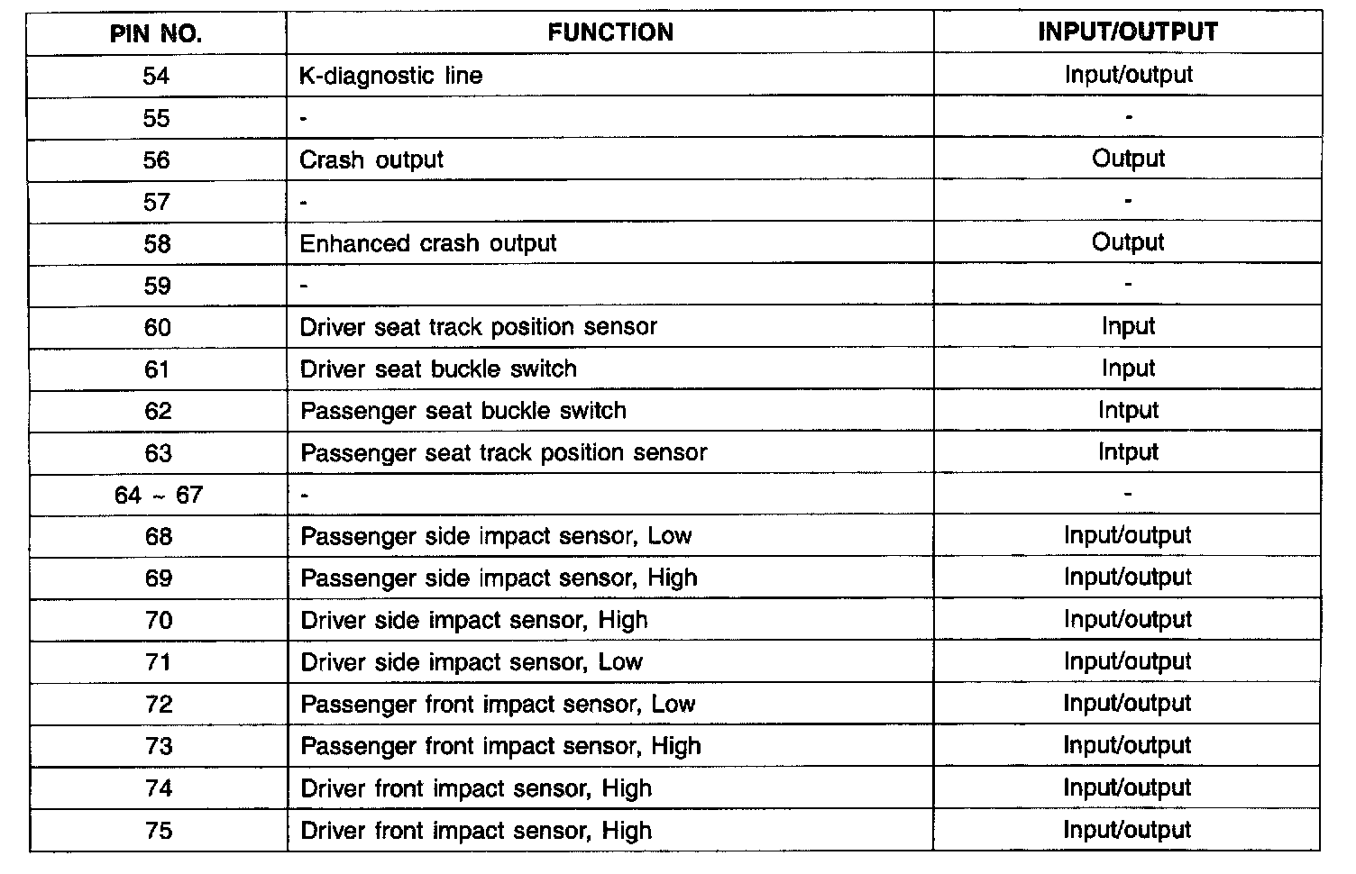 DAB+PAB+SAB+BPT (DUAL-STAGE AIRBAG) PIN No 54-75: